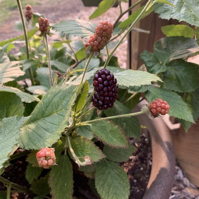 Baby Cakes Blackberry (Rubus ‘Baby Cakes’) is a decorative and edible blackberry plant that makes a statement on your entryway or patio. It is a dwarf shrub that grows to be no more than 4 feet tall by 4 feet wide. It is never a bad idea to invest in self-sustaining food sources and blackberry bushes are low maintenance and prolific sources of fresh berries. Baby Cakes Blackberry is almost completely thornless, making the harvest that much more enjoyable. Berries begin to appear mid-summer and repeat again early fall. Blackberry bushes are lovely as a border planting, or in a container or barrel on a rustic patio.